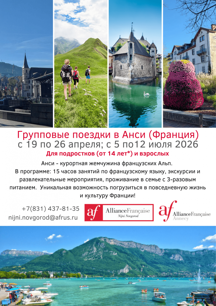 Альянс Франсез — Нижний Новгород и Альянс Франсез – Анси (Франция)* приглашают желающих поехать на культурно-лингвистическую стажировку.🌏🌍