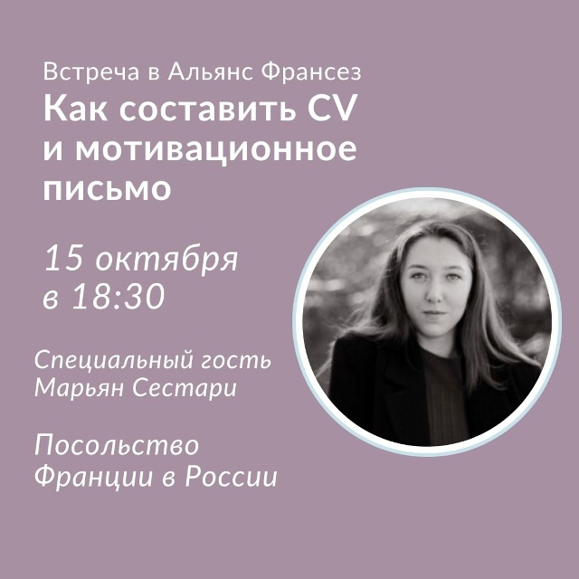 Встреча пройдет французском и русском языке. Вход свободный по регистрации